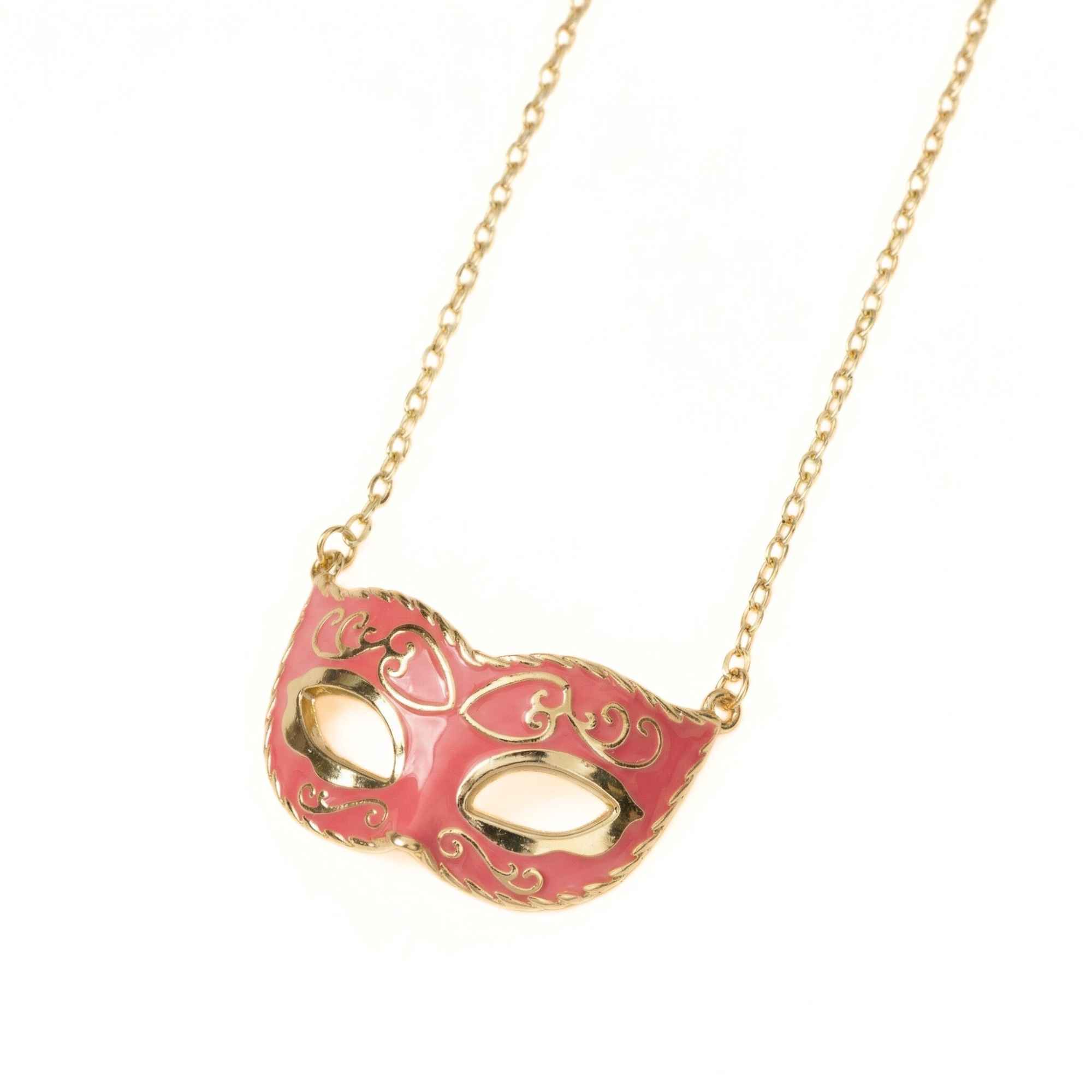 Gold-Plated Silver Mask Necklace – Enamel Artistic Pendant for Women