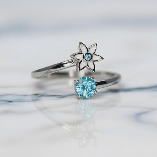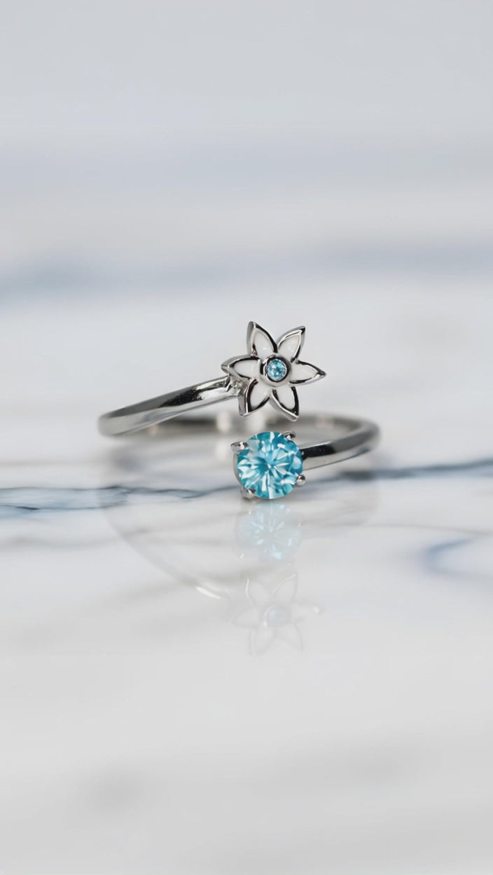 Handmade Silver Ring with Blue Stone & White Enamel Flower | Hypoallergenic Designer Jewelry