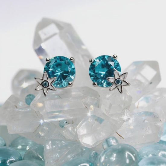 Handmade Silver Stud Earrings with Blue Stone & White Enamel Flower | Hypoallergenic Designer Jewelry